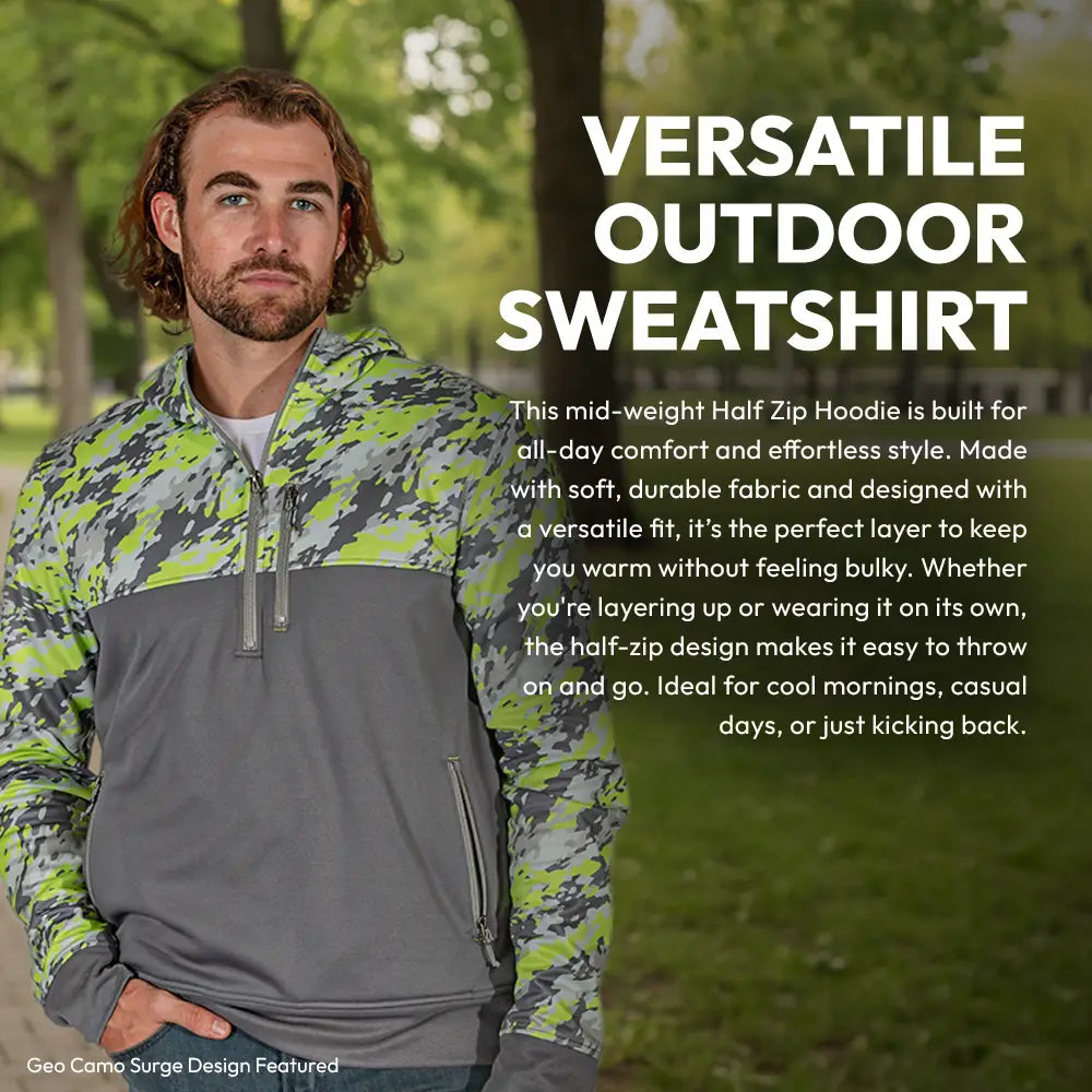 This mid-weight Half Zip Hoodie is built for all-day comfort and effortless style. Made with soft, durable fabric and designed with a versatile fit, it’s the perfect layer to keep you warm without feeling bulky. Whether you're layering up or wearing it on its own, the half-zip design makes it easy to throw on and go. Ideal for cool mornings, casual days, or just kicking back—this hoodie delivers comfort you’ll reach for again and again.