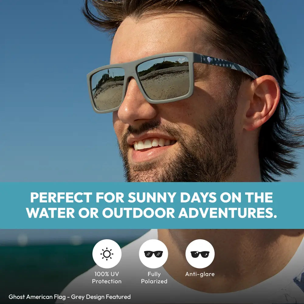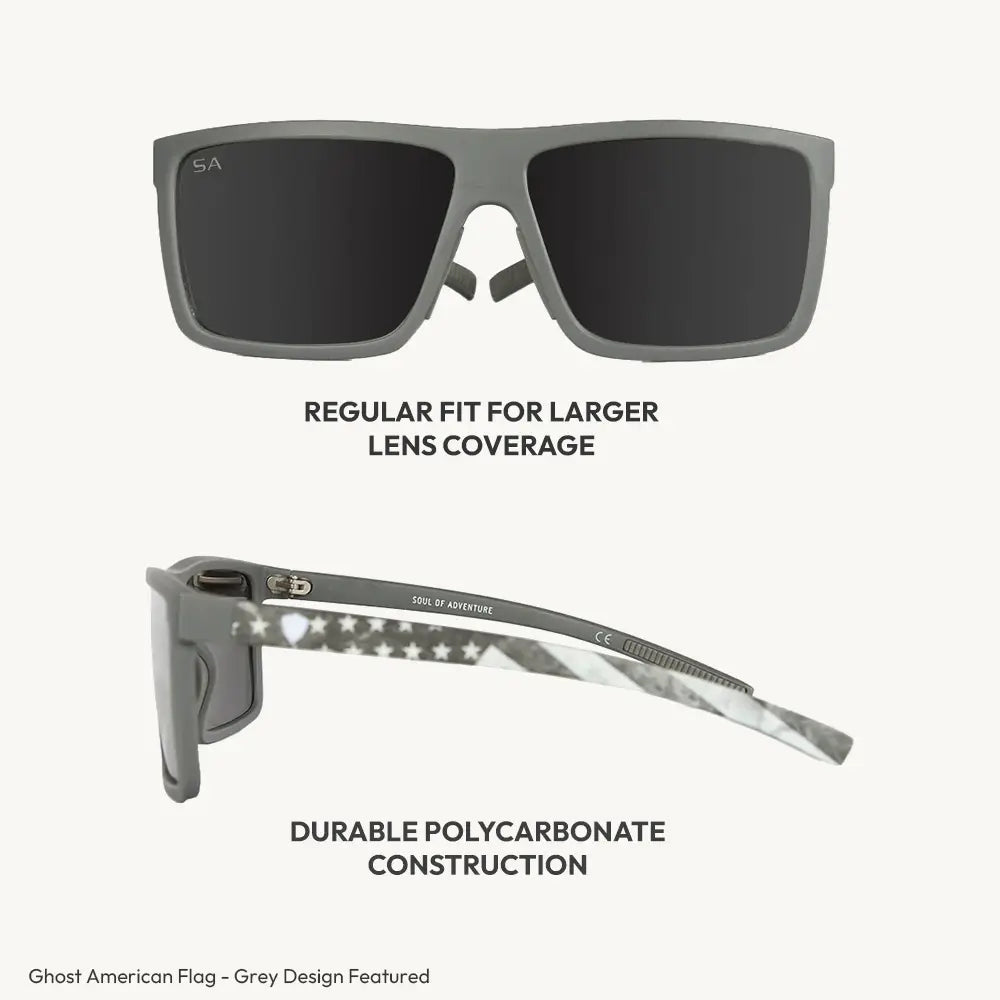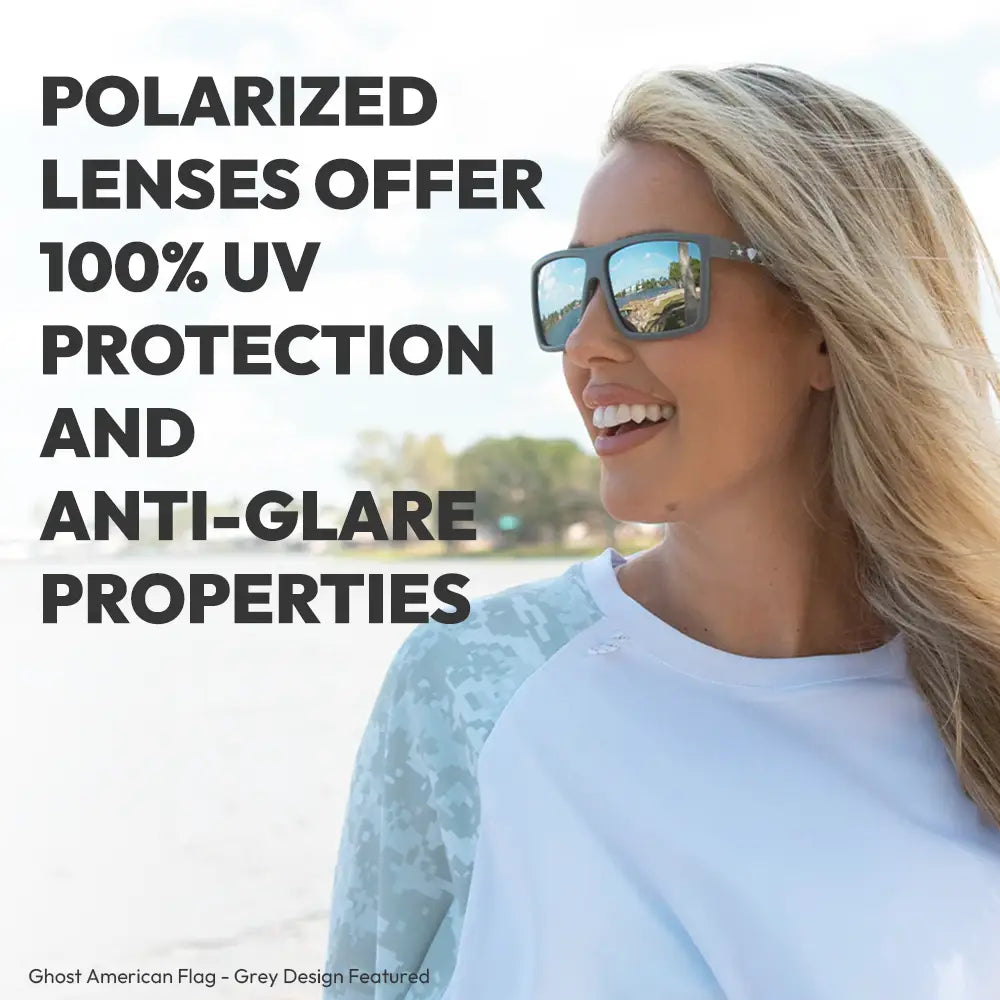 The Sport frames fuse straight bridge style lines and frame shape with streamlined temples. This regular fit provides a larger lens coverage design. Featuring a polycarbonate construction, fully polarized 100% UV Protection Lenses with Anti-Glare perfect for those days on the water or exploring in the sun.