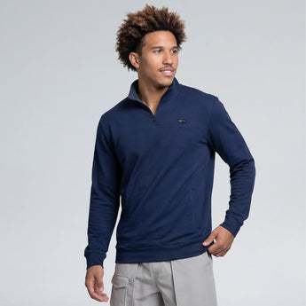The North Beach Quarter Zip is built for those days that start with coffee on the dock and end around the fire. Ultra-soft double knit fleece moves with you, with cut-through hand pockets that keep things simple and side panels that dial in the fit. No fuss, no overthinking — just grab it and go.