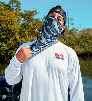 Our Multi-Use Face Shields®, commonly referred to as Neck Gaiters, are made for wherever the outdoors takes you. Lightweight, breathable, and comfortable, they keep you cool, dry, and protected in any conditions. Wear them over 10 different ways—like a face cover, bandana, beanie, or hair tie—whether you're hiking, fishing, riding, or out in the sun. With UPF 30+ sun protection, they help block harmful UV rays on bright days to keep you safe.