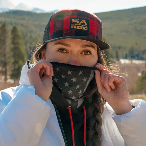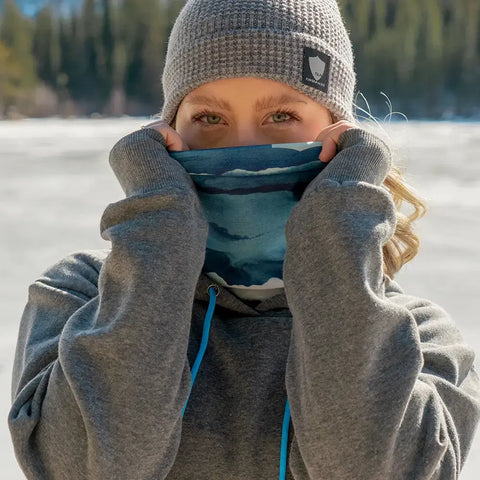 Thermal fleece shield for face, neck, and ears that locks in heat and fights off cold, wind, and chill.