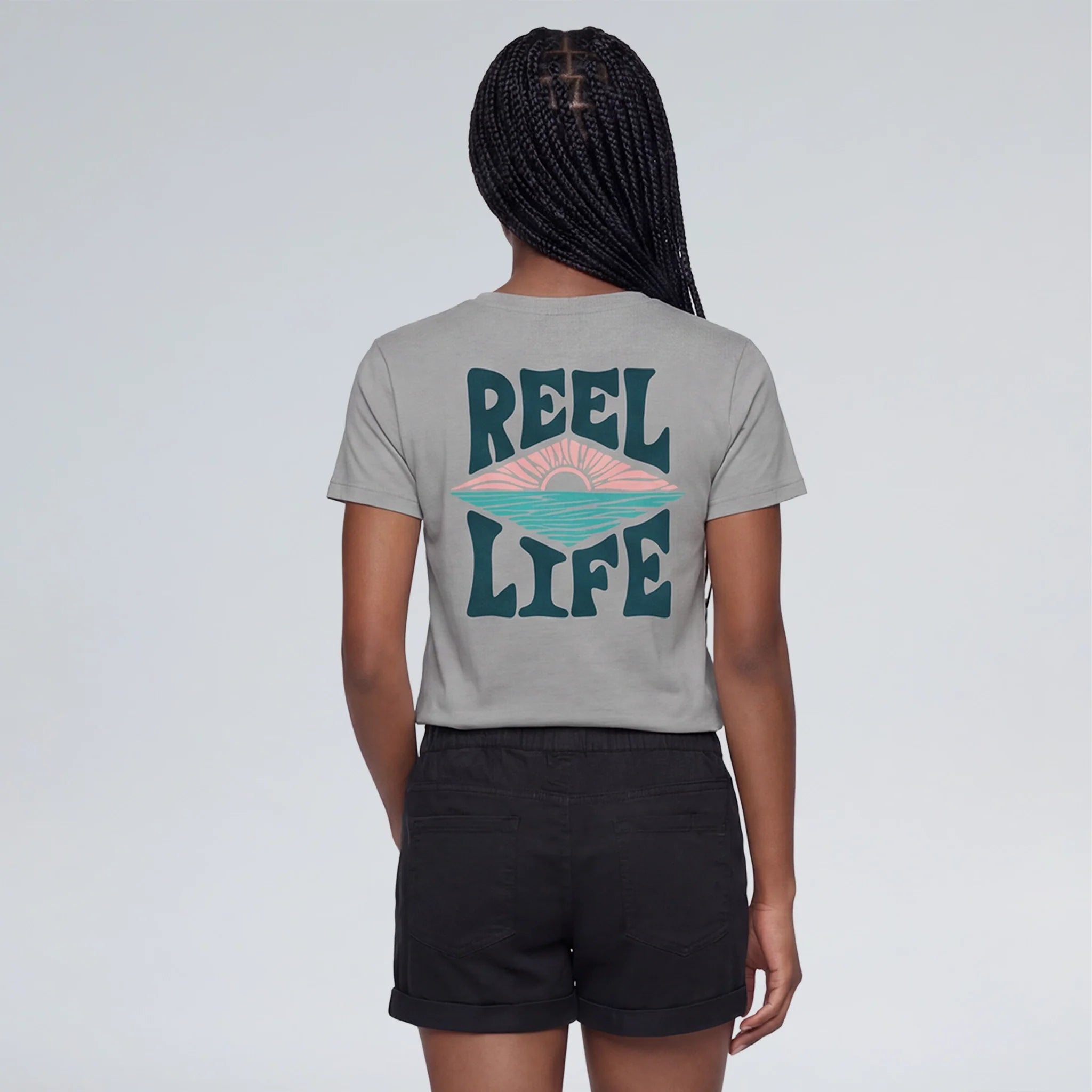The Reel Life Women's Essential Graphic Tee. Soft from the start, bold by design. Built for the ones who spend their best days outside.