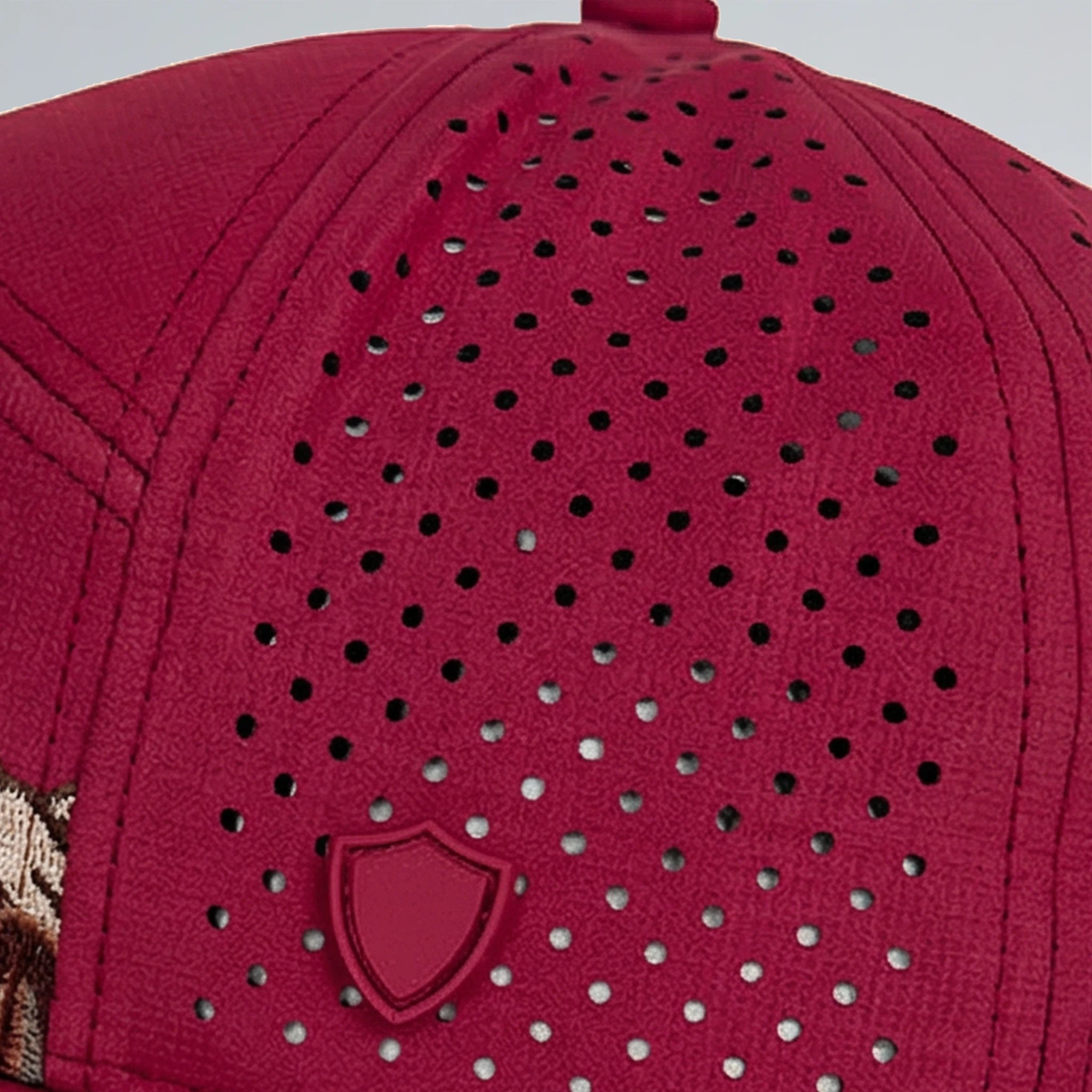100% polyester ripstop shell with water-repellent panels and premium high-density embroidery on the front — raised, defined, and built to stay that way. Laser perforated mesh back panels and a moisture-wicking sweatband keep air moving and heat out all day.