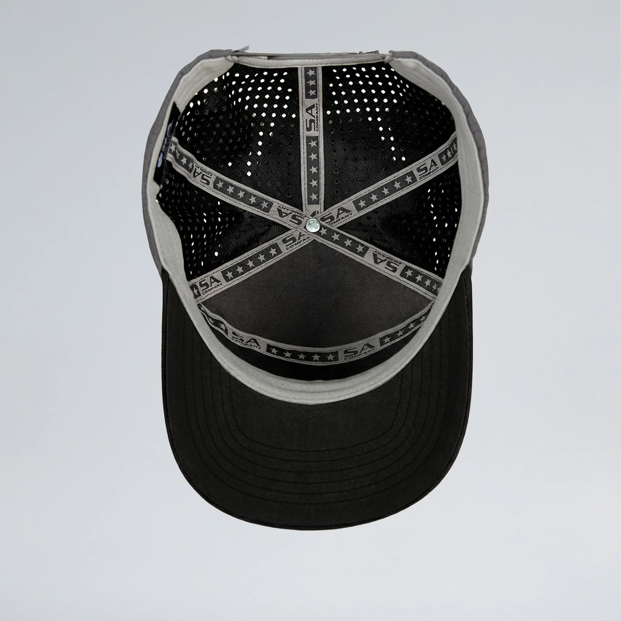 The Performance Sundaze Snapback is built for the ones who are always moving — boat ramp to backyard, trail to tailgate. Premium high-density embroidery on the bold flat front sets it apart from everything else out there, while water-repellent panels, laser-perforated mesh, and a moisture-wicking sweatband keep you cool and dry no matter how the day unfolds. Built for the long day. Ready when you are.